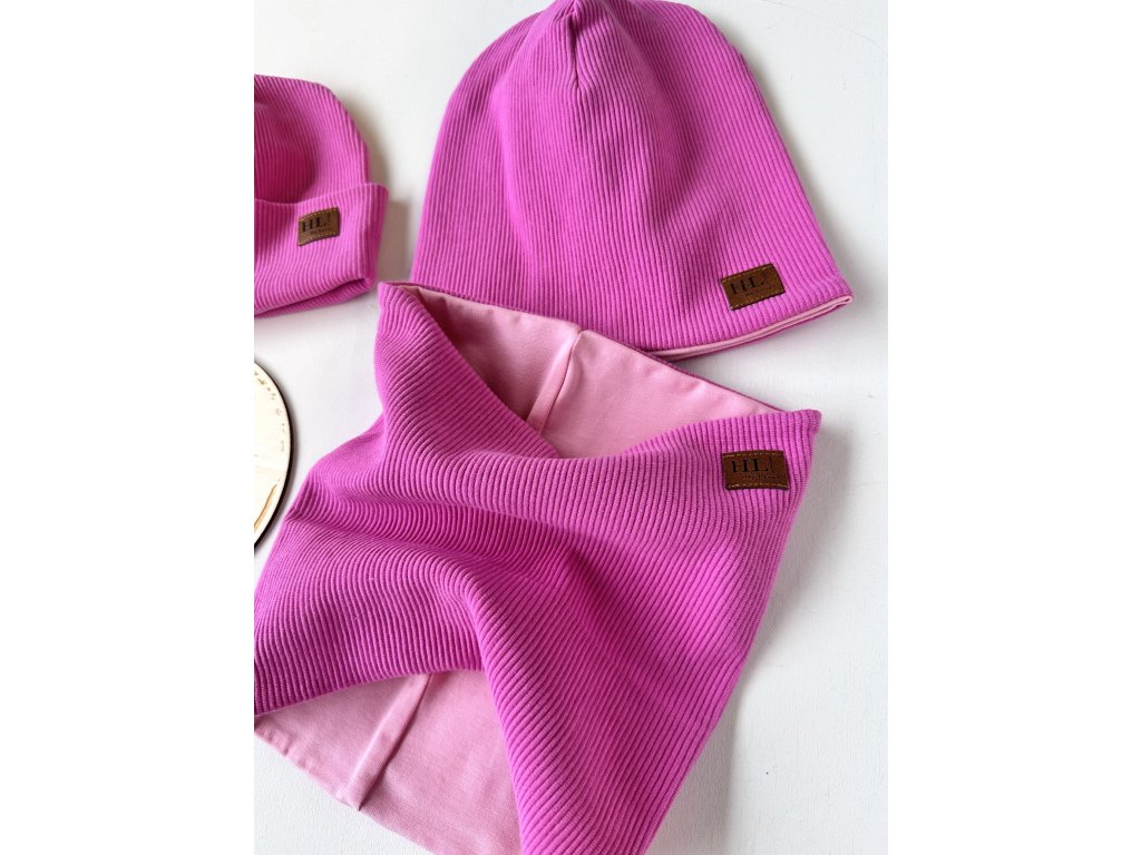 Čepice / nákrčník hrubší ŽEBRO RŮŽOVÁ