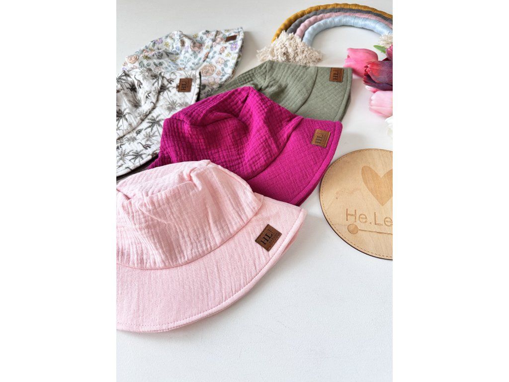 Klobouček ochrání obličej a hlavu před ostrým sluníčkem. Ideální parťák na horké letní dny. Mušelínový materiál je lehký na hlavě, vzdušný a také savý. TOP materiál na léto.