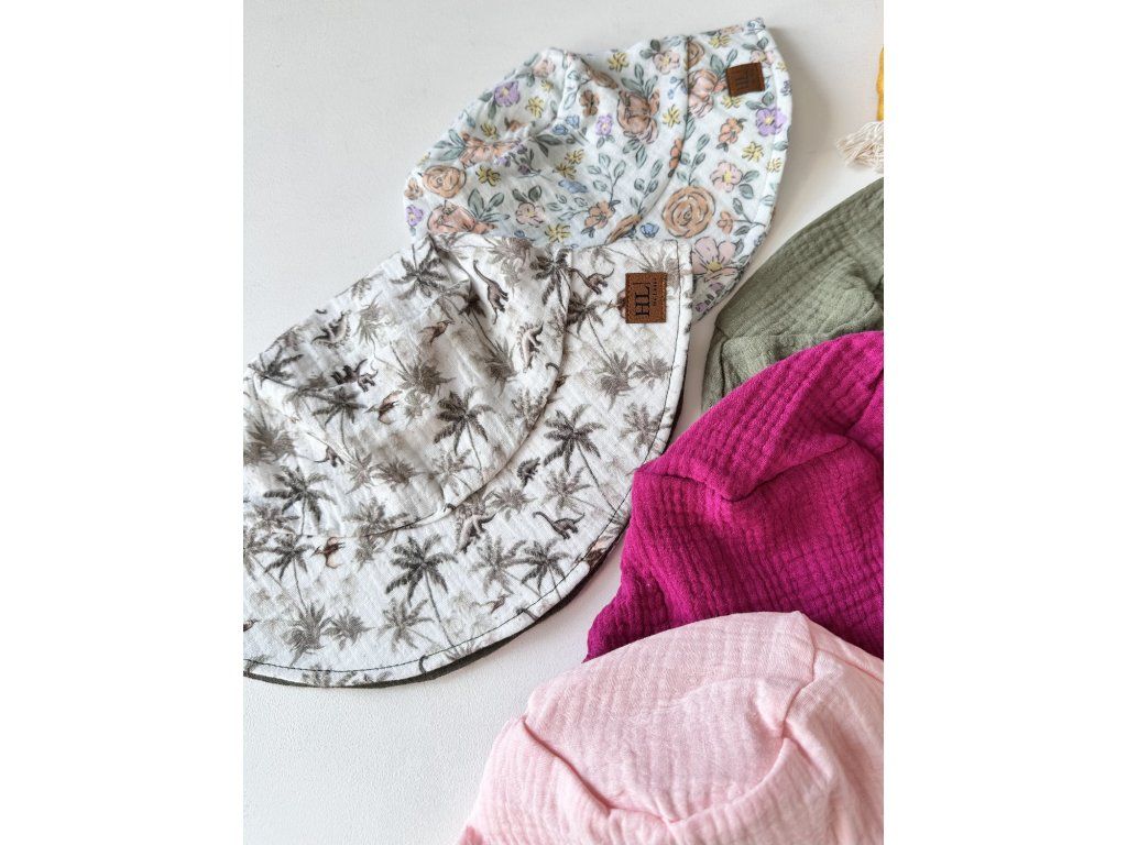 Klobouček ochrání obličej a hlavu před ostrým sluníčkem. Ideální parťák na horké letní dny. Mušelínový materiál je lehký na hlavě, vzdušný a také savý. TOP materiál na léto.