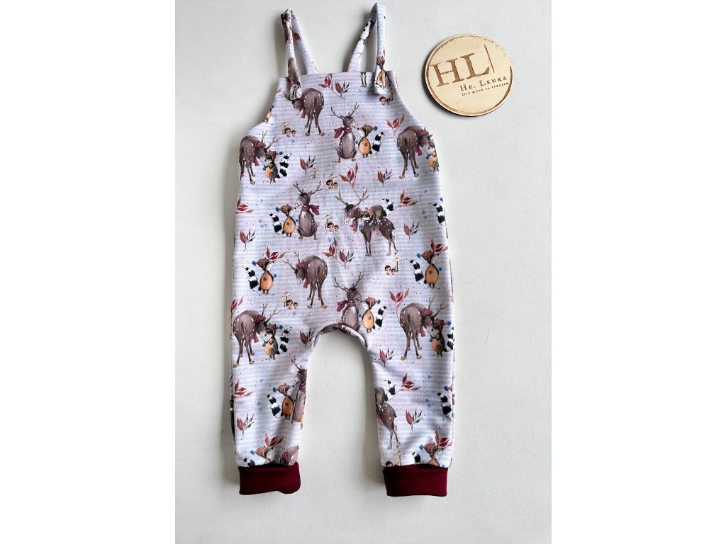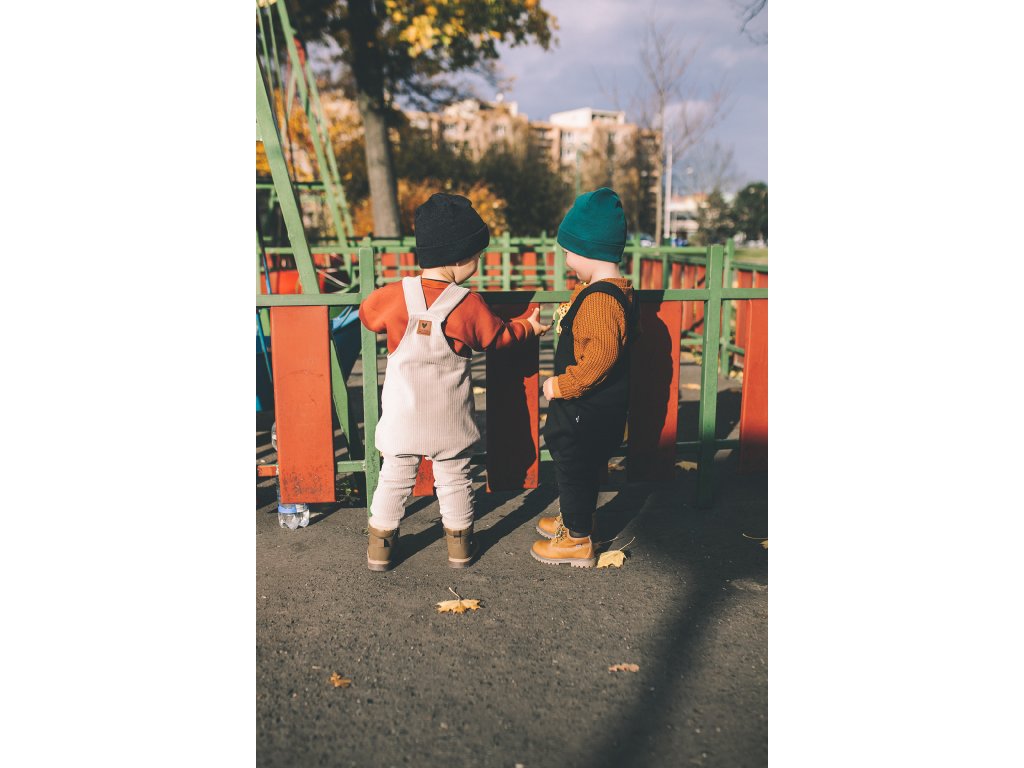 - Rostoucí střih: nohavice jsou vybaveny prodlouženými náplety, které zajistí, že lacláče porostou s vaším dítětem a vydrží mu na delší dobu.
