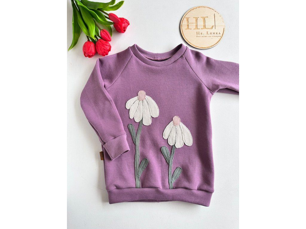 Mikina střihu klasik v barvě ŠEŘÍKU, s aplikací vysokých ranních KOPRETIN. Poslední kus.