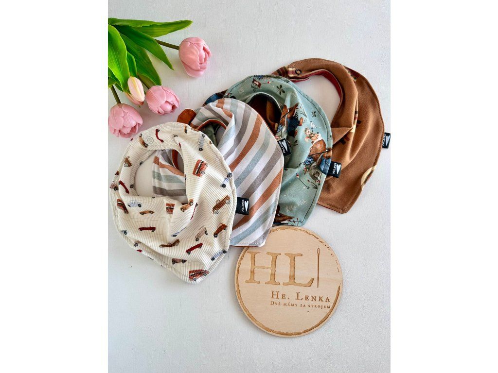 Konec mokrého kola na bodýčku! Tento praktický šáteček zachytí přebytečné sliny, ale klidně poslouží i jako malý módní doplněk pod kombinézu nebo overal.  Díky měkkému materiálu a praktickému zapínání na patentky máte jistotu, že slintáček sedne a bude držet celý den.