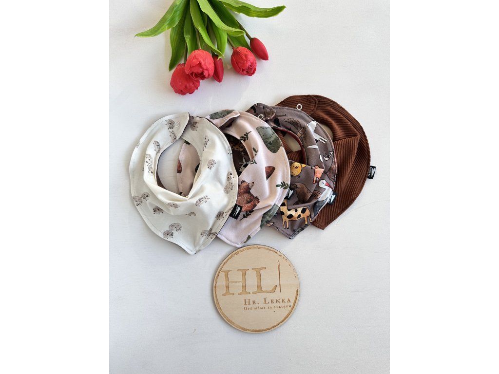 Konec mokrého kola na bodýčku! Tento praktický šáteček zachytí přebytečné sliny, ale klidně poslouží i jako malý módní doplněk pod kombinézu nebo overal.  Díky měkkému materiálu a praktickému zapínání na patentky máte jistotu, že slintáček sedne a bude držet celý den.
