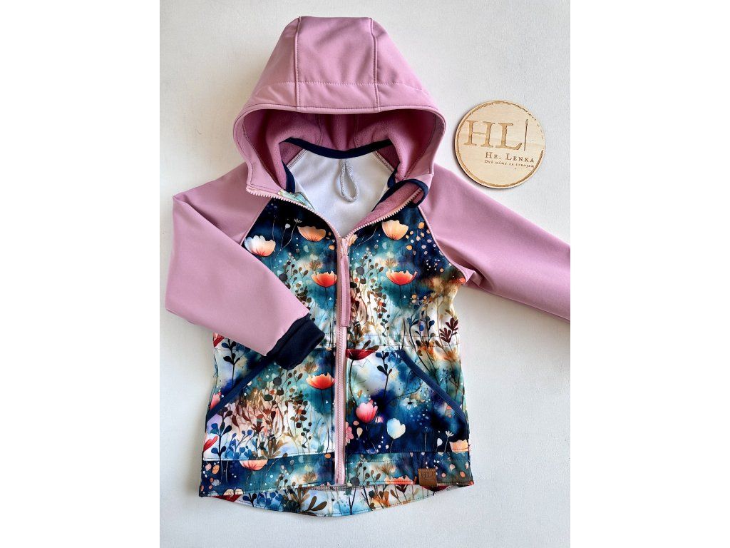 Softshellová bunda vel. 104/110 STARORŮŽOVÁ/KVÍTÍ