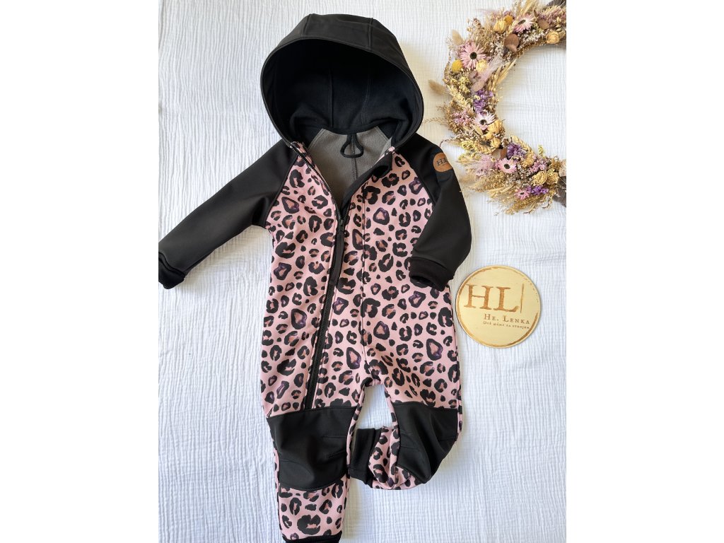 Softshellová kombinéza vel. 86/92 ČERNÁ/RŮŽOVÝ LEOPARD